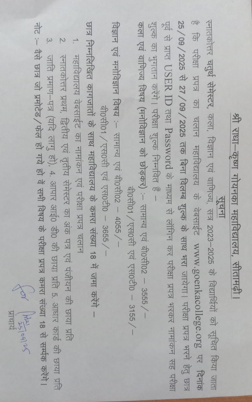 Sri Radha Krishna Goenka College, Sitamarhi being the first college of the district, popularly known